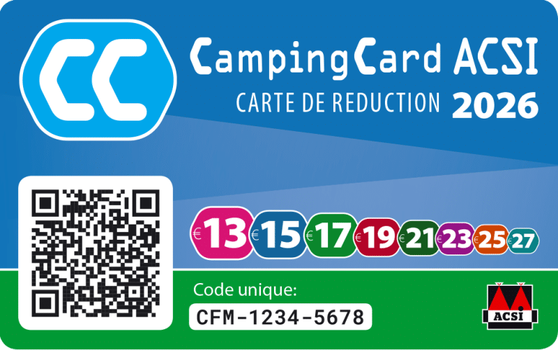 La carte de réduction CampingCard ACSI numérique ou physique contiendra un QR code. Vous pourrez le scanner avec l’appareil photo d’un smartphone, une tablette, un ordinateur portable ou un PC. Une fois le QR code scanné, les informations du client s’affi chent dans l’ACSI Campsite Portal. Ensuite, vous pouvez facilement copier ces données sur votre propre système, les imprimer ou vous les envoyer par email pour un traitement ultérieur. Il ne sera plus nécessaire de renseigner les informations manuellement, ce qui accélérera l’enregistrement.