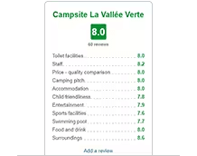 Een widget is een klein, grafisch element dat eenvoudig toe te voegen is aan uw website en nuttige informatie bevat voor de websitebezoeker. Bijvoorbeeld de gemiddelde cijfers die u krijgt van kampeerders die een beoordeling hebben achtergelaten op onze websites of via onze apps.