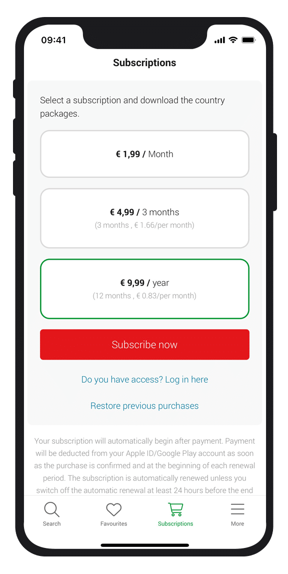 Sluit makkelijk een abonnement af. U kunt kiezen tussen een maand-, drie maanden- of een jaarabonnement. Downl… Lees meeroad makkelijk een landenpakket en gebruik de informatie offline. Lees minder