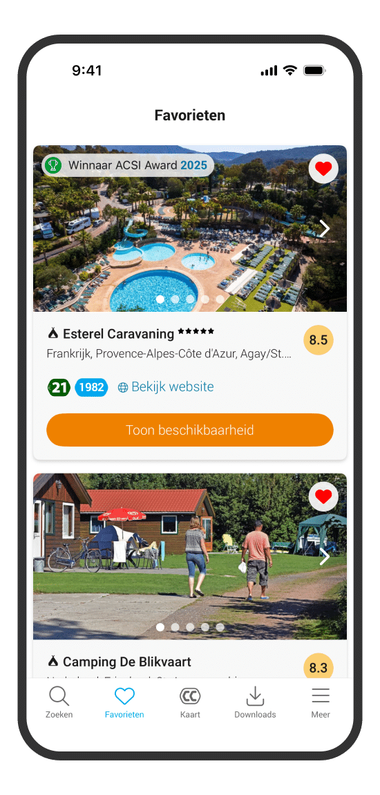U kunt een camping of camperplaats toevoegen aan uw favorieten. Zo stelt u een lijstje samen met plekken die i… Lees meernteressant vindt. Druk op een pagina op het hartje rechtsboven en de camping of camperplaats wordt toegevoegd. Via het menu kunt u bij ‘Favorieten’ uw lijstje snel bekijken. Lees minder